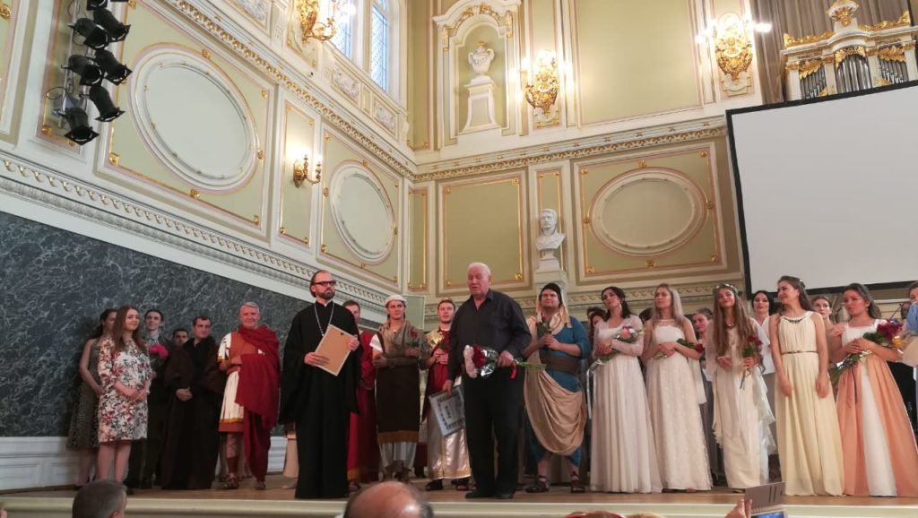 В завершение состоялась премьера гимна Санкт-Петербурга, написанного Грайром Ханеданьяном, после чего иерей Илия Макаров вручил благодарственные грамоты Совета по культуре композитору и одному из организаторов проекта — Светлане Штучковой.
