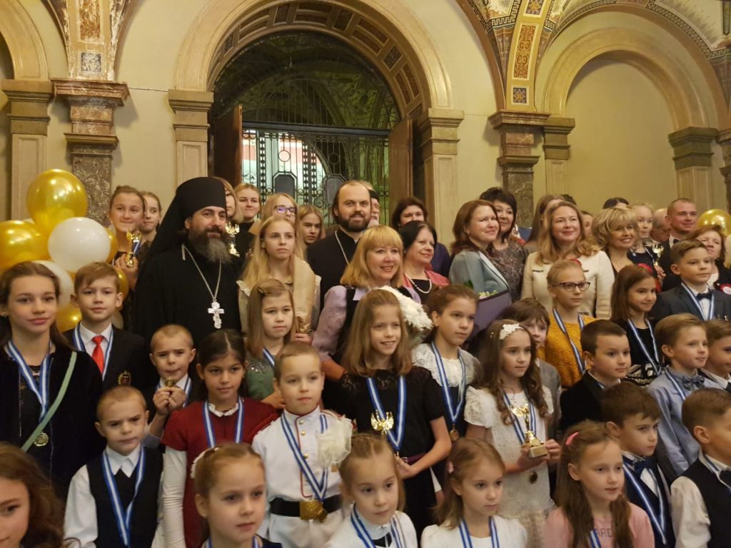 В завершение дня в кинозале прошло награждение победителей детских и педагогических конкурсов, которые ежегодно проводятся в Санкт-Петербургской митрополии. Лучшие детские работы регулярно представляются на главных Рождественских чтениях в Москве.