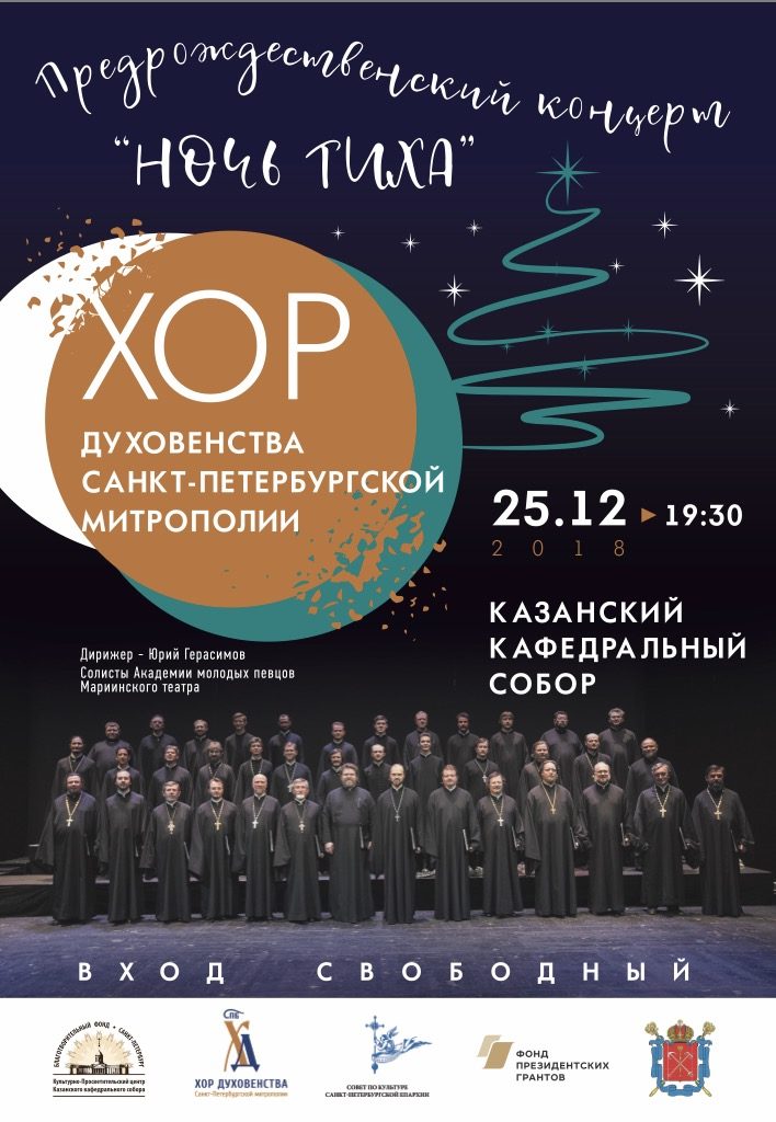 Сердечно приглашаем Вас на концерт Хора духовенства Санкт-Петербургской митрополии, который пройдет в Казанском Соборе 25 декабря в 19.30.