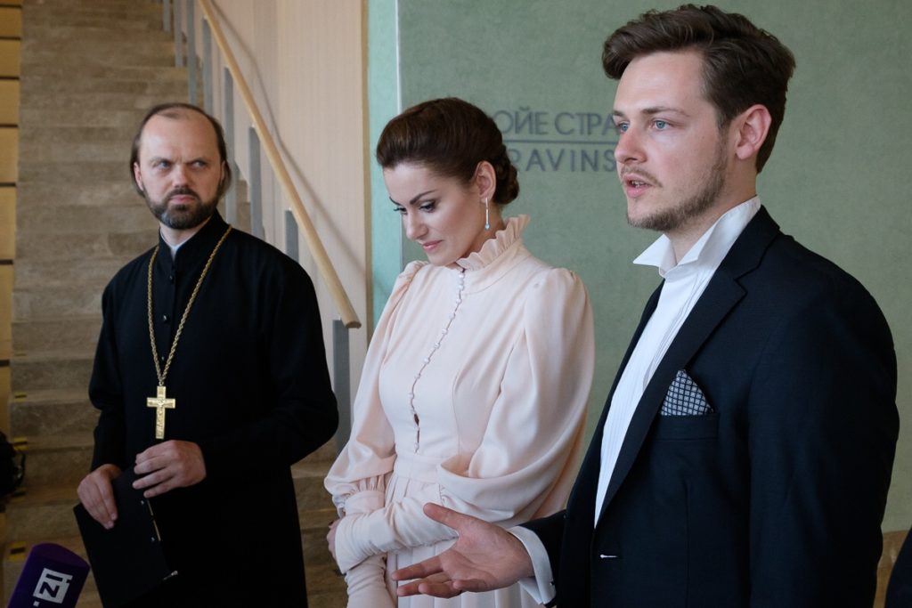 Ведущими вечера стали заслуженная артистка России Анна Ковальчук и хормейстер Академии молодых певцов Мариинского театра Павел Теплов. Перед началом спектакля в фойе Стравинского состоялся пресс-подход, во время которого журналисты ведущих теле- и радиоканалов смогли задать свои вопросы. В пресс-подходе приняли участие: иерей Илия Макаров, заслуженная артистка России Анна Ковальчук, солист Мариинского театра Павел Теплов и режиссер Алена Поликовская.
