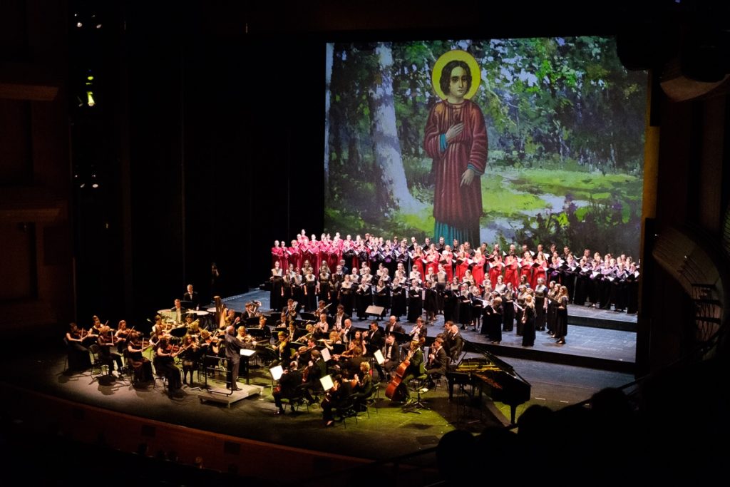 В спектакле-концерте приняли участие Хор духовенства и симфонический оркестр Санкт-Петербургской митрополии, Женский хор музыкального училища им. Н.А. Римского-Корсакова, Концертный хор Санкт-Петербургского института культуры, ансамбль «Кронверк-брасс», детский хор «Перезвоны», пианистка Анна Шпагина. Помимо петербургских исполнителей на сцене также выступил приглашенный коллектив — камерный хор «Нижний Новгород». Прозвучали произведения Н.А. Римского-Корсакова, Г.В. Свиридова, Д.Д. Шостаковича, Ю.А. Фалика. Премьерным стало исполнение сочинений современных петербургских композиторов Сергея Екимова и Ильи Кузнецова.