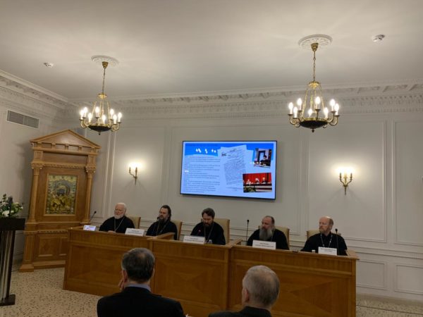 Ректоры ведущих вузов Москвы сообщили о студенческих проектах, посвященных 75-летию Великой Победы. Затем представители Петербургского епархиального совета по теологическому образованию рассказали о истории создания теолого-педагогических и религиоведческо-теологических учебных программ в Русской христианской гуманитарной академии и Российском государственном педагогическом университете. Лидером теологического образования в городе на Неве безусловно является Санкт-Петербургская духовная академия, имеющая государственную аккредитацию всех образовательных ступеней по теологии.