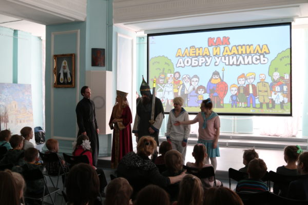 14 марта прошло театрально-коммуникативное действо из цикла «Живая история» для детей 5-7 лет с просмотром серий анимационного цикла «Как Алена и Данила добру учились» Бирюзовом зале Отдела религиозного образования и катехизации Санкт-Петербургской епархии.