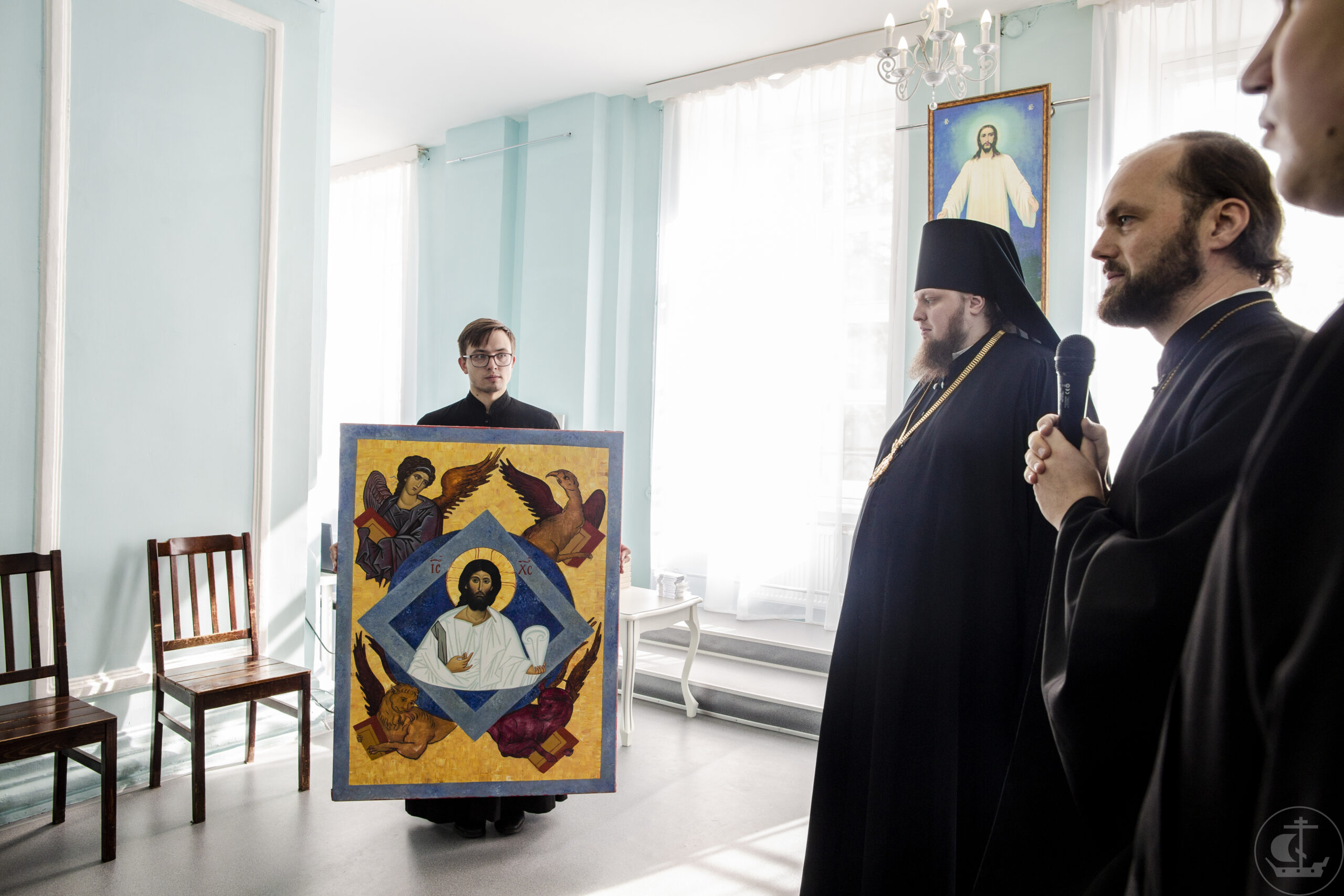 В ответ на слово ректора, Академии был преподнесен подарок: религиозная картина известного петербургского художника Ярослава Левченко, другие картины которого, также, можно видеть в залах Семинарского корпуса Александро-Невской лавры.