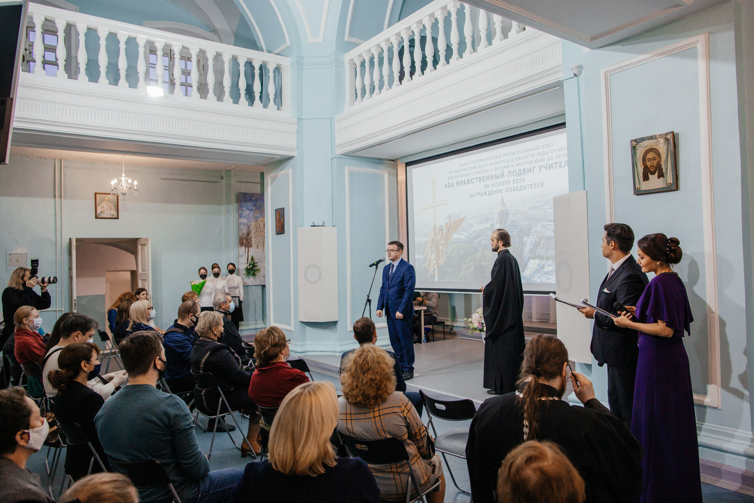 Призы в номинации «Лучший образовательный издательский проект года» вручали руководитель городского отдела по взаимодействию с религиозными объединениями Владимир Иванов и председатель экспертной комиссии конкурса иерей Герман Каптен. Отец Герман отметил, что трудно было выбрать достойнейших из достойных: «Все учителя заслуживают, чтобы их нравственный подвиг был награжден».