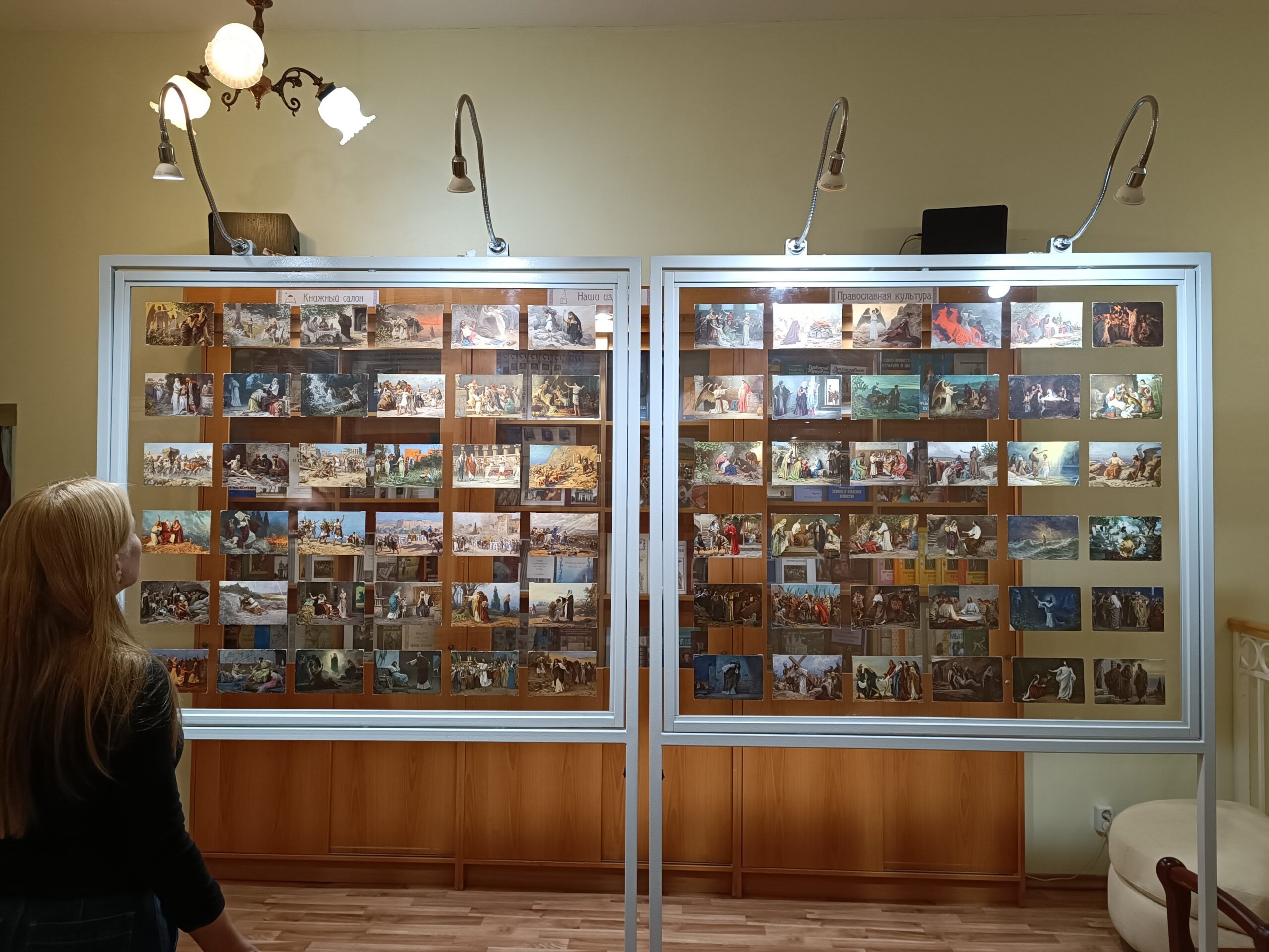 Зрителям, среди которых присутствовали студенты курсов и преподаватели, была представлена часть коллекции петербургского филокартиста Михаила Бровцева, посвященная сюжетам Священного Писания.