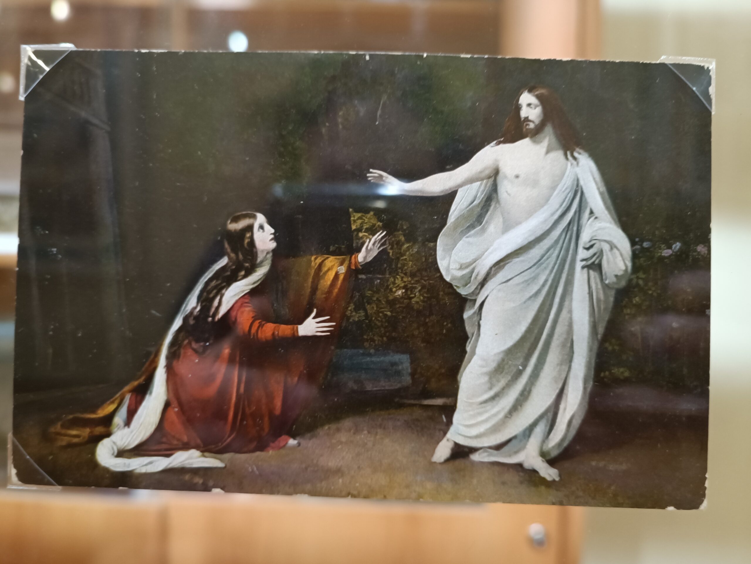 Вмещая на одной стороне библейский или евангельский сюжет, каждая открытка вместе сердечным посланием открывала адресату, а сегодня и зрителю, сакральный смысл Священного Писания.